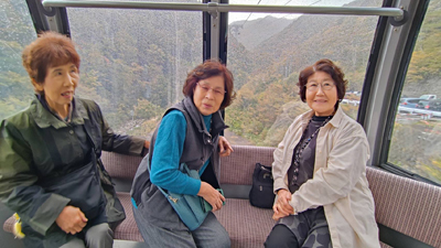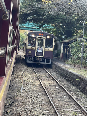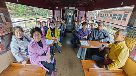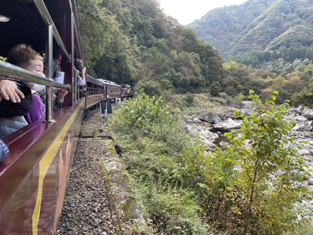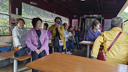 | わたらせ渓谷鉄道トロッコ渓谷号にて(宮崎佐喜子) | わたらせ渓谷鉄道トロッコ渓谷号にて(小山かづ子) |