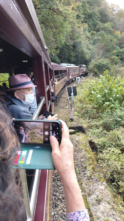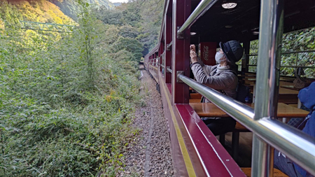 わたらせ渓谷鉄道トロッコ渓谷号にて(井澤貞子) |